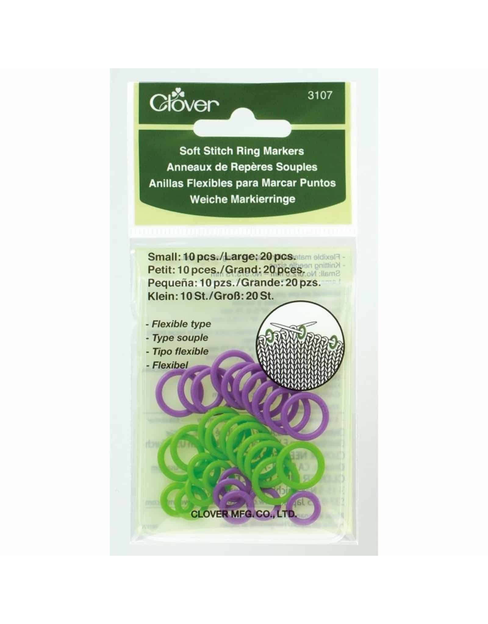 Met de ronde en gesloten stekenmarkeerders van het Japanse merk Clover blijft uw breipatroon netjes overzichtelijk. De ringen worden tijdens het breien om de breinaald geschoven, tussen twee steken in – ideaal om de plek voor of na specifieke patroonsteken of een mindering of meerdering aan te geven. Minder geschikt voor haakwerk. Verkrijgbaar in diverse afmetingen, materialen en kleuren. Geleverd per 1 verpakking.