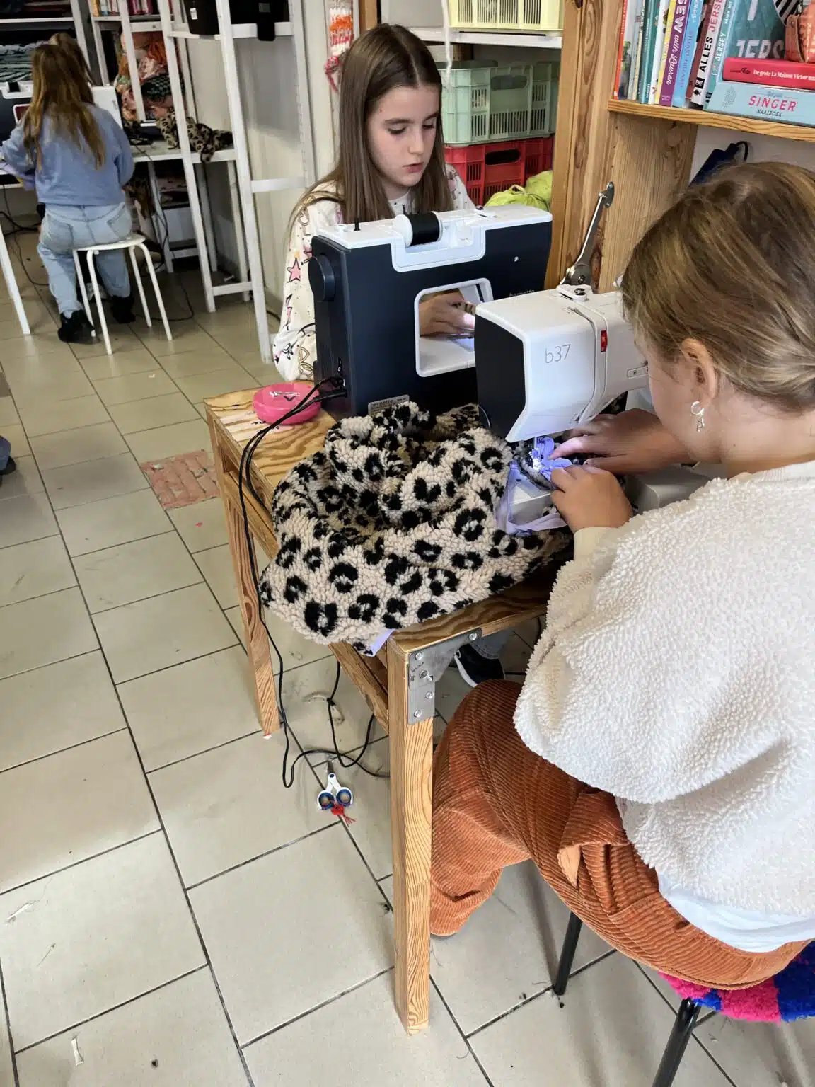 💡 En we werken bijna volledig met recupmateriaal! Oude jeans, tweedehands textiel, overschotten van vorige collecties… alles krijgt een tweede leven. Zo leer je niet alleen naaien, maar ook hoe je duurzaam met textiel omgaat en unieke stukken maakt met karakter.